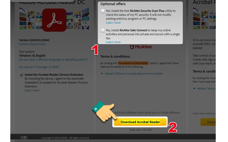 • Bước 2: Khi trang web tải xuất hiện, hãy bỏ chọn tùy chọn “Yes” ở mục “Optional Offers” và sau đó nhấp vào nút “Download Acrobat Reader”.